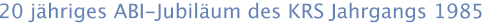 Diese „KRS 1985 Homepage“ soll in jedem Fall weiter geführt werden. Insofern möchten bitte alle, welche sich noch nicht in das Gästebuch dieser Homepage eingetragen haben, dies unbedingt nachholen. Bitte auch nachfolgende Veränderungen (Anschrift, Name, emailAdresse u.a.) uns Kund tun. Dies erleichtert es uns dann auch, das 25-jährige AbiTreffen zu organisieren. Wir möchten dann doch alle Ehemaligen erreichen und die Einladung zukommen lassen.